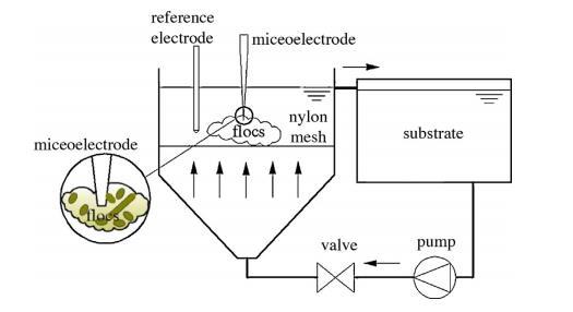 從 PN 反應器中取出污泥絮體,輕輕地放置在流動池中尼龍網的正上方。微電極在沉降條件下穿透污泥聚集體。為了獲得穩態剖面,在開始剖面測量前將污泥聚集體靜置 30 分鐘,并且每種微電極測量至少進行三次。由于絮體具有對稱結構,微電極只需穿透絮體深度的一半即可反映整個底物分布。