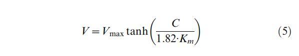 式中,C(t)是氧濃度隨時間的函數,Co是所考慮間隔的初始濃度。Vmax和Km迭代變化,直到使用Excel中的解算器命令實現通過最小二乘法調整獲得的最佳擬合[29]。