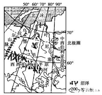 (1)分析西西伯利亞平原沼澤廣布的原因。