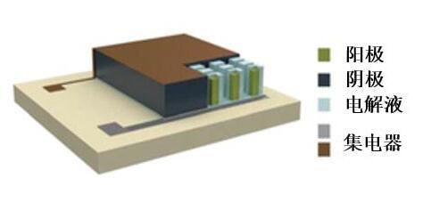 采用堆疊式工藝、電極柱式工藝和叉指微電極工藝的微型電池,往往不能在保證電池供電性能的條件下,將占地面積縮小到1 mm2以下。而微型電池(占地面積<1 mm2)的能量密度至少為100μWh/cm2才有應用空間。因此,研究人員的目標是設計一種面積明顯小于1 mm2且可以集成在芯片上的電池,其最小能量密度為100μWh cm-2,怎么實現呢?