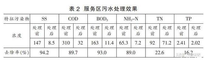 針對膜生物反應(yīng)器的實(shí)際效果進(jìn)行驗(yàn)證,在婁衡高速項(xiàng)目中對膜生物反應(yīng)器的實(shí)際效果進(jìn)行了實(shí)測。處理效果如表2所示。