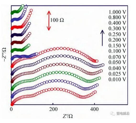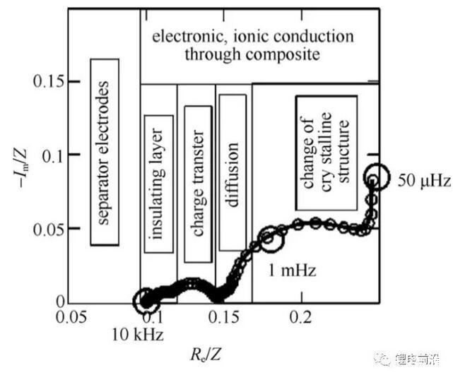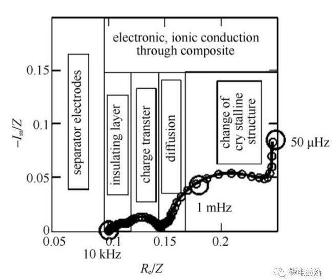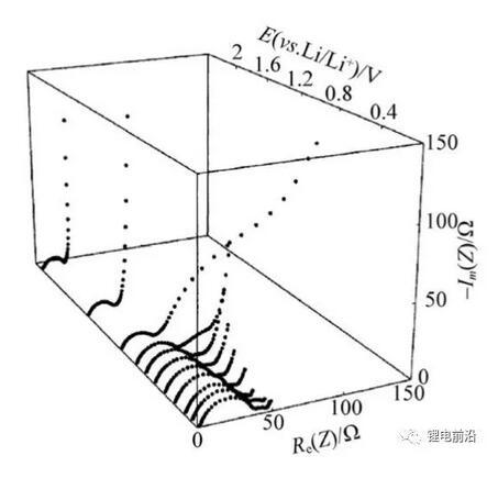 圖2嵌入化合物電極中Li+脫出和嵌入過程的典型電化學阻抗譜