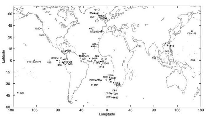 這個是他們選取的包含上新時到更新世沉積記錄的全球57個深海鉆孔點位置。