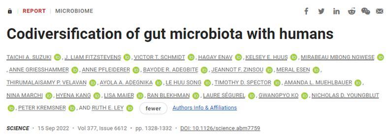 1.Taichi A.Suzuki et al.Codiversification of gut microbiota with humans.Science,2022,doi:10.1126/science.abm7759.