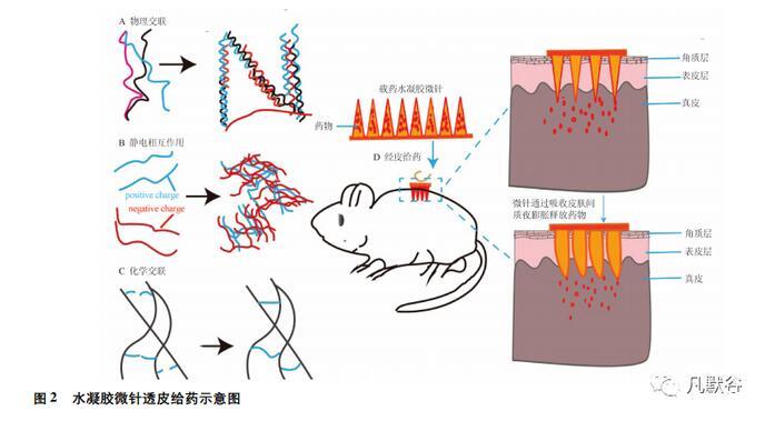 盡管每種凝膠化方法都有其優點和局限性,但該領域一直向結合多種組分和/或機制以實現改進水凝膠配方的方向發展,使得水凝膠微針具有多種釋藥方式,通過水凝膠纖維交聯密度調節藥物遞送速率,實現更好的經皮給藥效果。