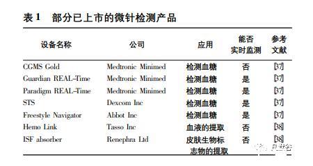 目前,水凝膠微針材料層出不窮,微針性能日漸完善,并在臨床上取得了一定的成功,比如用于監測ISF葡萄糖微針傳感器已經上市銷售,見表1。