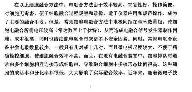 3.細胞電融合儀的設計及制作。在研究了細胞電融合過程中涉及到的細胞操作,即排隊、電穿孔、擠壓等三個基本過程及所需電信號特征后,提出了用單頻正弦信號和雙向歸零高壓脈沖信號作為細胞電融合的最佳操控與穿孔信號。在此基礎上,設計了信號產生電路、智能控制電路、顯示電路、高壓電源電路并進行相應的軟件編寫、PCB設計、電子裝配與調試,參數測試等,獲得了可以提供高通量細胞電融合所需電信號的細胞電融合儀,其技術指標達到國內先進水平。