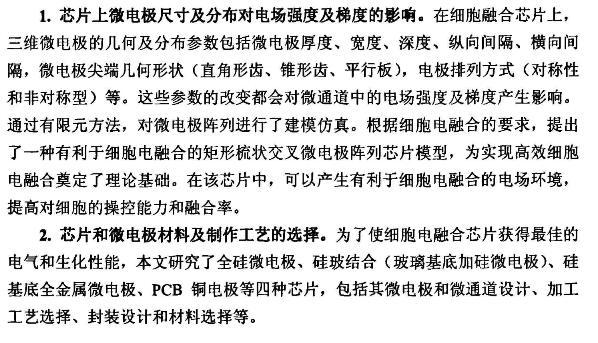 2.芯片和微電極材料及制作工藝的選擇。為了使細胞電融合芯片獲得最佳的電氣和生化性能,本文研究了全硅微電極、硅玻結合(玻璃基底加硅微電極)、硅基底全金屬微電極、PCB銅電極等四種芯片,包括其微電極和微通道設計、加工工藝選擇、封裝設計和材料選擇等。