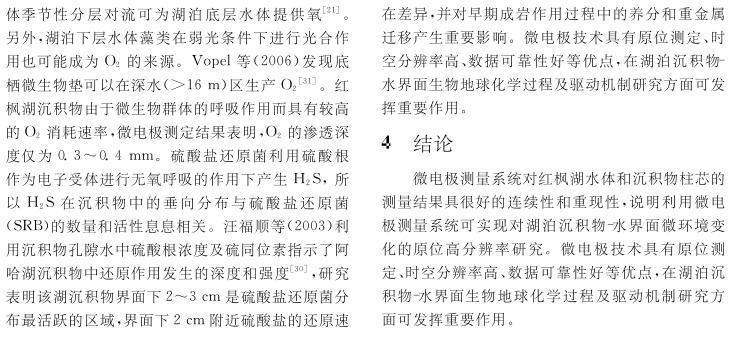 微電極測量系統(tǒng)具有原位測定、時空分辨率高、數(shù)據(jù)可靠性好等優(yōu)點,在湖泊沉積物-水界面微尺度生物地球化學過程和驅(qū)動機制研究方面可發(fā)揮重要作用。