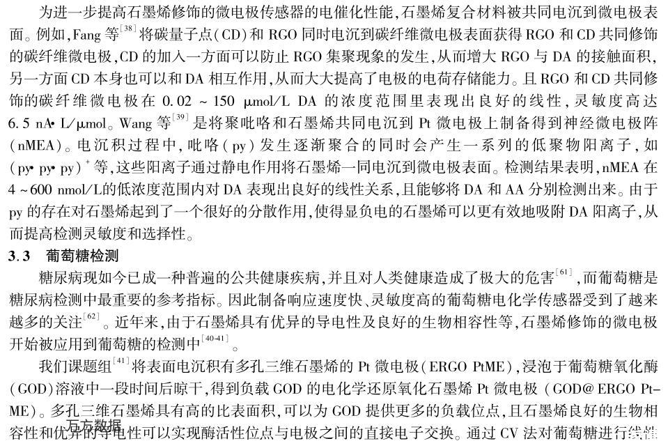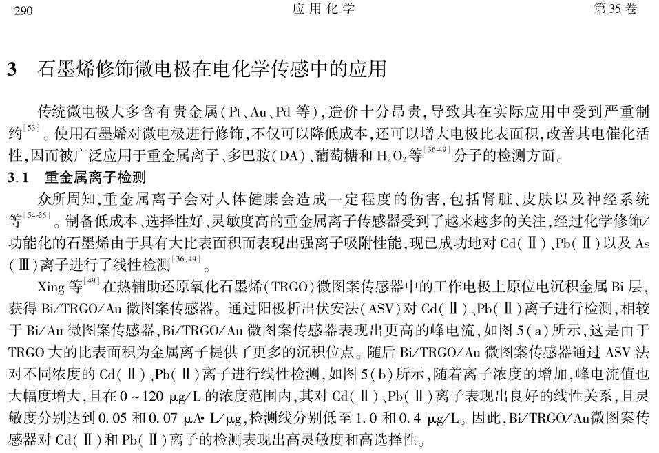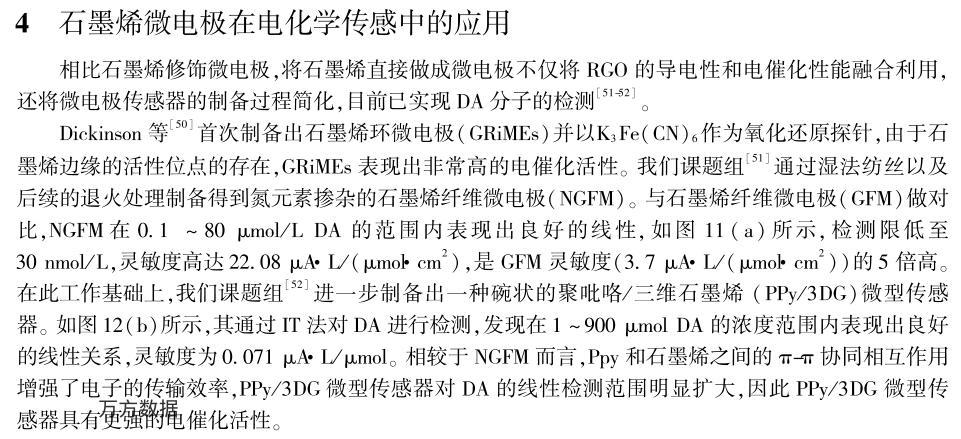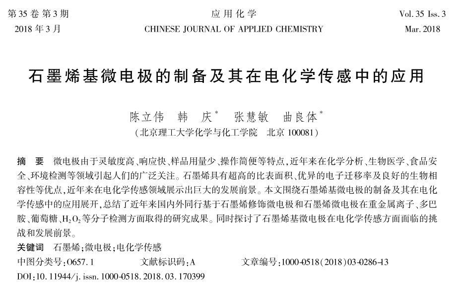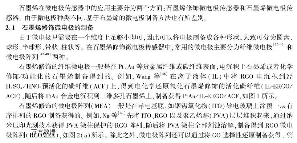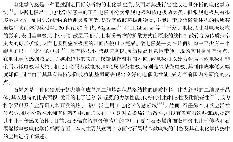 本文圍繞石墨烯基微電極的制備及其在電化學傳感中的應用展開,總結了近年來國內外同行基于石墨烯修飾微電極和石墨烯微電極在重金屬離子、多巴胺、葡萄糖、H2O2等分子檢測方面取得的研究成果。同時探討了石墨烯基微電極在電化學傳感方面面臨的挑戰和發展前景。