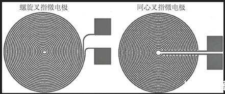 Figure 3.Helical interdigital microelectrode and concentric interdigital microelectrode 圖3.螺旋叉指微電極及同心叉指微電極