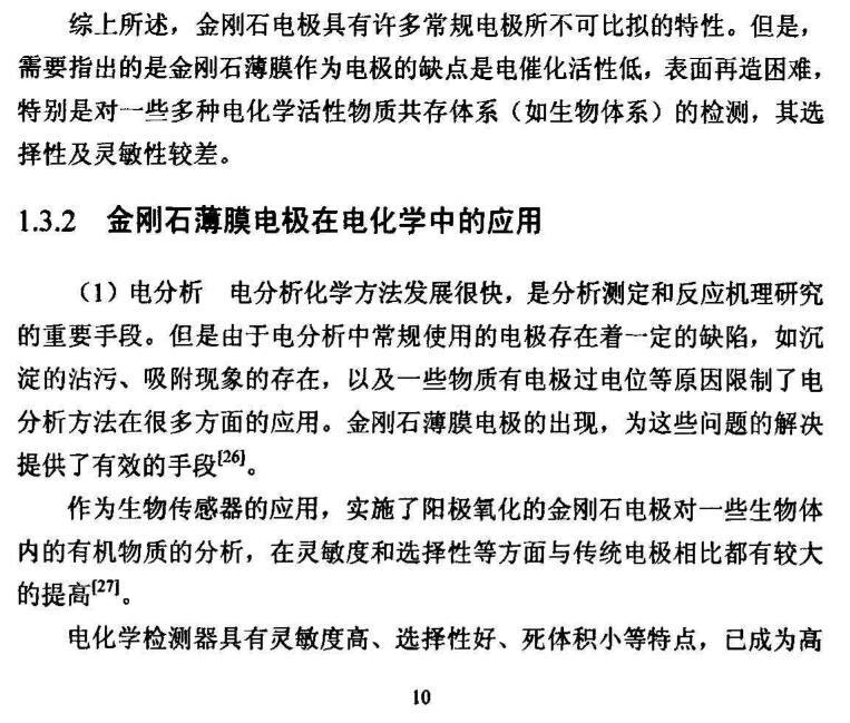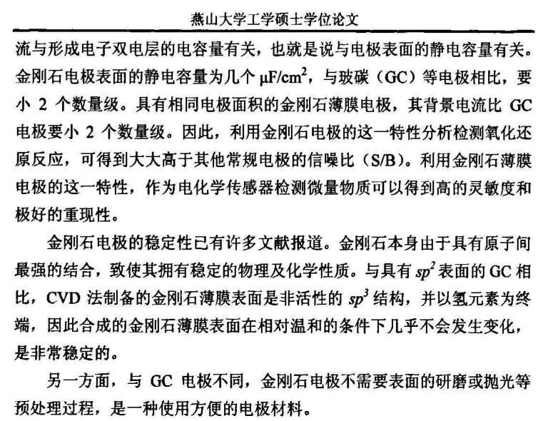 【摘要】:金剛石獨(dú)特的電化學(xué)特性,如寬電勢(shì)窗口、低背景電流、長(zhǎng)期穩(wěn)定性等,使它在電分析化學(xué)領(lǐng)域備受矚目。本文以爆轟法合成的納米金剛石為原料,制備了直徑分別為50μm和100μm的納米金剛石粉末微電極,利用循環(huán)伏安法、計(jì)時(shí)電流法以及交流阻抗法等電化學(xué)技術(shù)研究納米金剛石粉末微電極的電化學(xué)性質(zhì)。