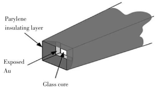 新型微電極探針式氧傳感器(DO MEA),原理(由兩個(gè)與電解質(zhì)相接觸的金屬電極及選擇性薄膜組成,氧敏感薄膜只能透過氧和其他氣體,水和可溶解物質(zhì)不能透過。透過膜的氧氣在陰極上還原,產(chǎn)生微弱的擴(kuò)散電流,在一定溫度下電流大小與水樣溶解氧含量成正比。),響應(yīng)時(shí)間更快為15 s,測定范圍0~9 mg/L。該傳感器有一個(gè)最大的優(yōu)點(diǎn)是探針可以滲透到被測樣內(nèi)部,故所測數(shù)據(jù)更精確。為了避免這種傳感器受到選擇性薄膜中物質(zhì)的污染,將探針頭設(shè)計(jì)成為內(nèi)凹陷的,這樣可以獲得更穩(wěn)定的靈敏度以及更快的響應(yīng)時(shí)間,而凹陷面的直徑與長度是決定該傳感器靈敏度最重要的兩個(gè)因素。圖1是該電極探針頭示意圖。