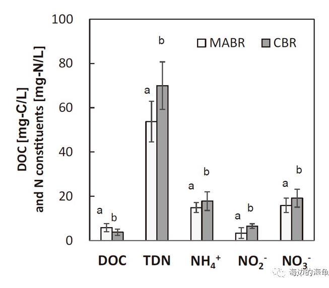 實驗結果:研究表明MABR中的表面氮去除率(11.0±0.80 gN/(m 2天)略高于CBR(9.71±0.94 gN/(m 2天),而總有機碳去除效率相當(MABR為96.9±1.0%,CBR為98.0±0.8%)。與此形成鮮明對比的是,MABR中溶解的N2O濃度(0.011±0.001 mg N 2 O-N/L)比CBR中的(1.38±0.25 mg N 2 ON/L)低兩個數量級,導致明顯的N2O排放因子(MABR中的0.0058±0.0005%與CBR中的0.72±0.13%)。對當地凈N2O生產和消費率的分析揭示了N2O區域的產生和消耗在MABR生物膜中是相鄰的。實時定量PCR表明MABR與CBR中反硝化基因的豐度更高,尤其是一氧化二氮還原酶(nosZ)基因。通過對16S rRNA基因擴增子測序對微生物群落組成的分析顯示,Tauera屬(31.2±11%)、根瘤菌(10.9±6.6%)、狹養單胞菌(6.8±2.7%)、鞘氨醇桿菌(3.2±1.1%)存在豐富和Brevundimonas(2.5±1.0%)作為MABR中潛在的N2O還原細菌。