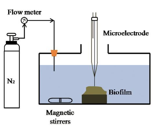 圖1、應用unisense微電極系統用于測量生物膜中底物生物膜濃度的分批測試系統的示意圖。