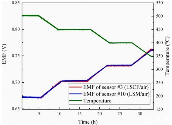 3)下限溫度測(cè)試表明,LSCF/空氣參考傳感器在低至200℃時(shí)仍能正常工作。