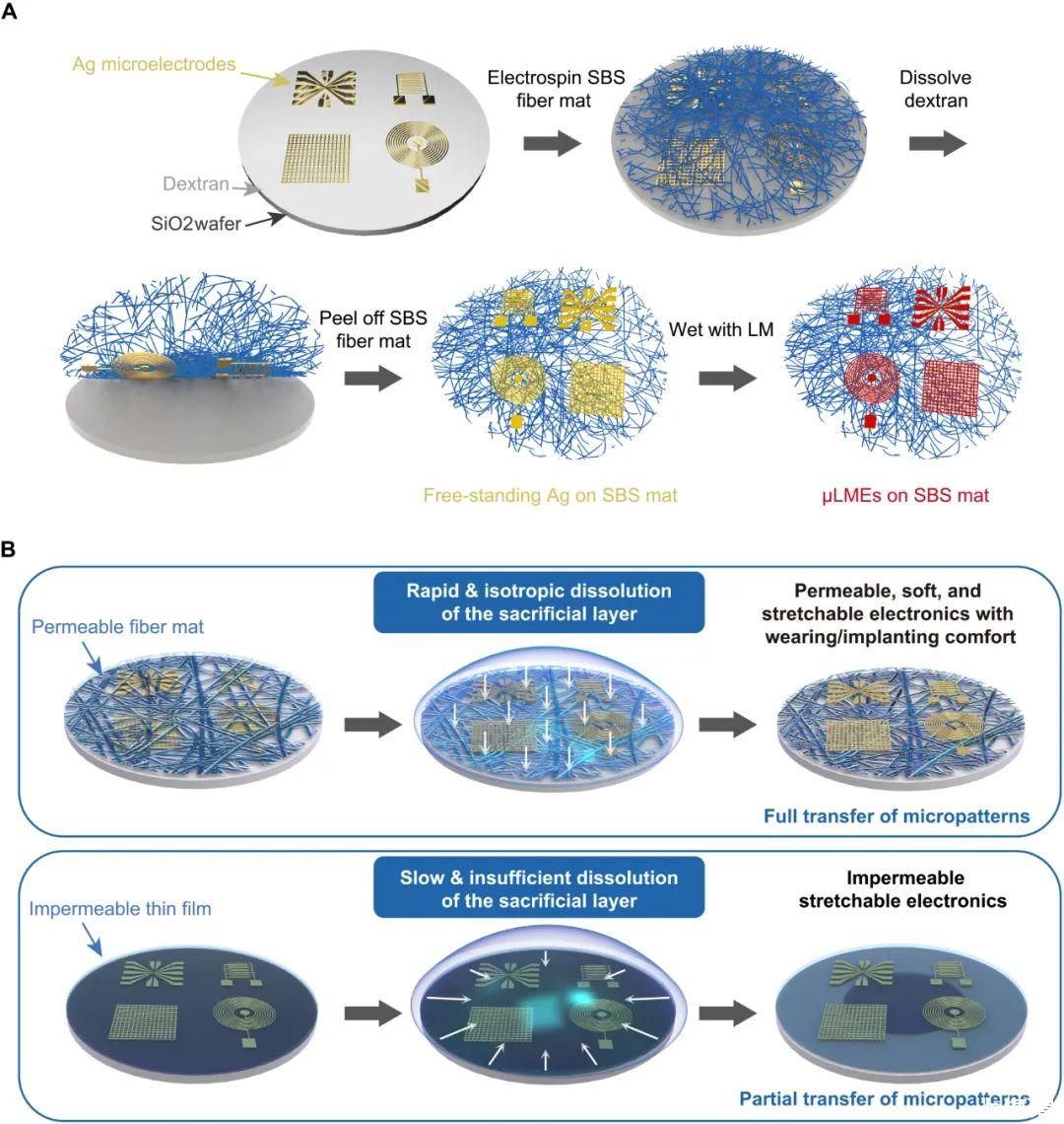 研究成果以題為“Wafer-patterned,permeable,and stretchable liquid metal microelectrodes for implantable bioelectronics with chronic biocompatibility”的發表在最新一期的《Science Advances》上