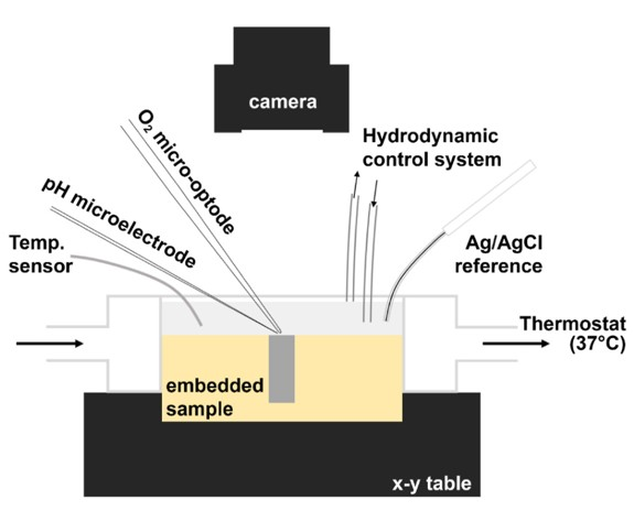 圖1、同時測量局部pH值和溶解氧濃度的示意圖。