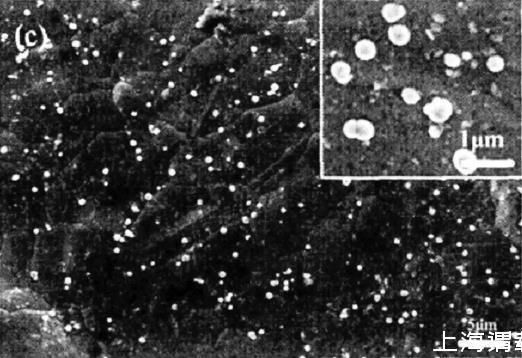 通過(guò)浸漬沉積法制備的Pt/NF電極的SEM圖如圖1所示,與一般材料不同,Pt納米粒子沒(méi)有負(fù)載在孔的內(nèi)部而是均勻地負(fù)載在NF電極的表面,可以看出Pt納米粒子的直徑大約200~500 nm。電極的表面相較之下更加粗糙,增大了其比表面積,便有利于提高電極的析氫催化活性。泡沫鎳負(fù)載Mo的合金電極如圖2所示,表面存在大量裂紋,電鍍Ni-Mo合金時(shí)產(chǎn)生大量的氫氣導(dǎo)致這些裂紋的產(chǎn)生。而在長(zhǎng)時(shí)間電解過(guò)程中,由于氫氣劇烈析出,這些裂紋容易導(dǎo)致鍍層脫落,從而使電極活性降低。由于Ni-Mo合金鍍層的納米晶結(jié)構(gòu),且表面存在大量的小突起,Ni-Mo合金才具有較高的真實(shí)表面積。采用電沉積法制備的Fe/NF電極也可以顯著提高電極的析氫催化活性,大量的Fe納米粒子沉積在光滑的泡沫鎳電極表面,可以使電極的表面更加粗糙,有效增大比表面積,從而提高了電極的析氫催化活性。泡沫鎳表面沉積銅膜,泡沫鎳表面沉積金屬銅不僅沒(méi)有促進(jìn)催化析氫作用,相反抑制了泡沫鎳的析氫性能。吳梅等人制備的Ni-WC/Ni電極析氫電極的極化電流比泡沫Ni電極平均大50 mA/cm2以上。