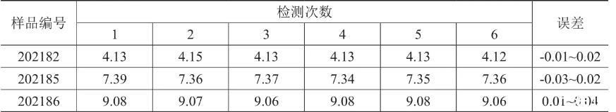 由表1和表2可知,重復性和再現性實驗結果極差均小于0.1,本次精密度檢測結果符合技術要求,結果滿意。