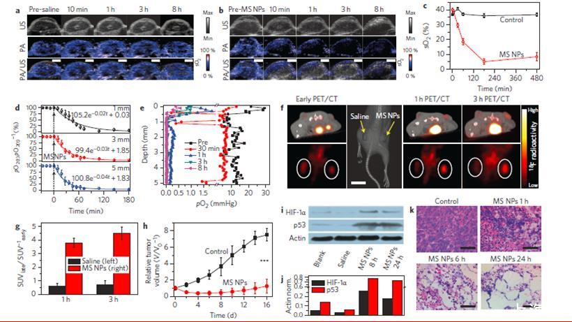 通過注射聚合物改性的硅化鎂納米粒子,可以充當(dāng)DOA清除腫瘤中的氧氣并形成副產(chǎn)物阻止腫瘤毛細(xì)血管再氧化。納米顆粒的制備是利用自蔓延高溫合成方法實(shí)現(xiàn)的。在酸性腫瘤微環(huán)境中,Mg2Si釋放出的硅烷可以有效地與溶解組織和血紅蛋白結(jié)合的氧三者反應(yīng)形成二氧化硅(SiO2)聚集體。這種原位構(gòu)造的SiO2會(huì)阻斷腫瘤毛細(xì)血管并防止腫瘤接受新供應(yīng)的氧和營養(yǎng)物。