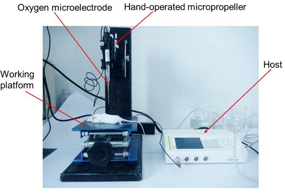 應(yīng)用了Unisense氧氣微電極測(cè)試了老鼠體內(nèi)靜脈中血液中的氧氣濃度以及老鼠體內(nèi)腫瘤組織的氧氣濃度。其中老鼠靜脈血液是從老鼠尾靜脈抽出20ul的靜脈血液后,并立馬進(jìn)行血液中氧氣濃度的測(cè)試。而老鼠體內(nèi)的各個(gè)器官組織氧氣濃度是通過使用氧微電極穿刺測(cè)試得到的。